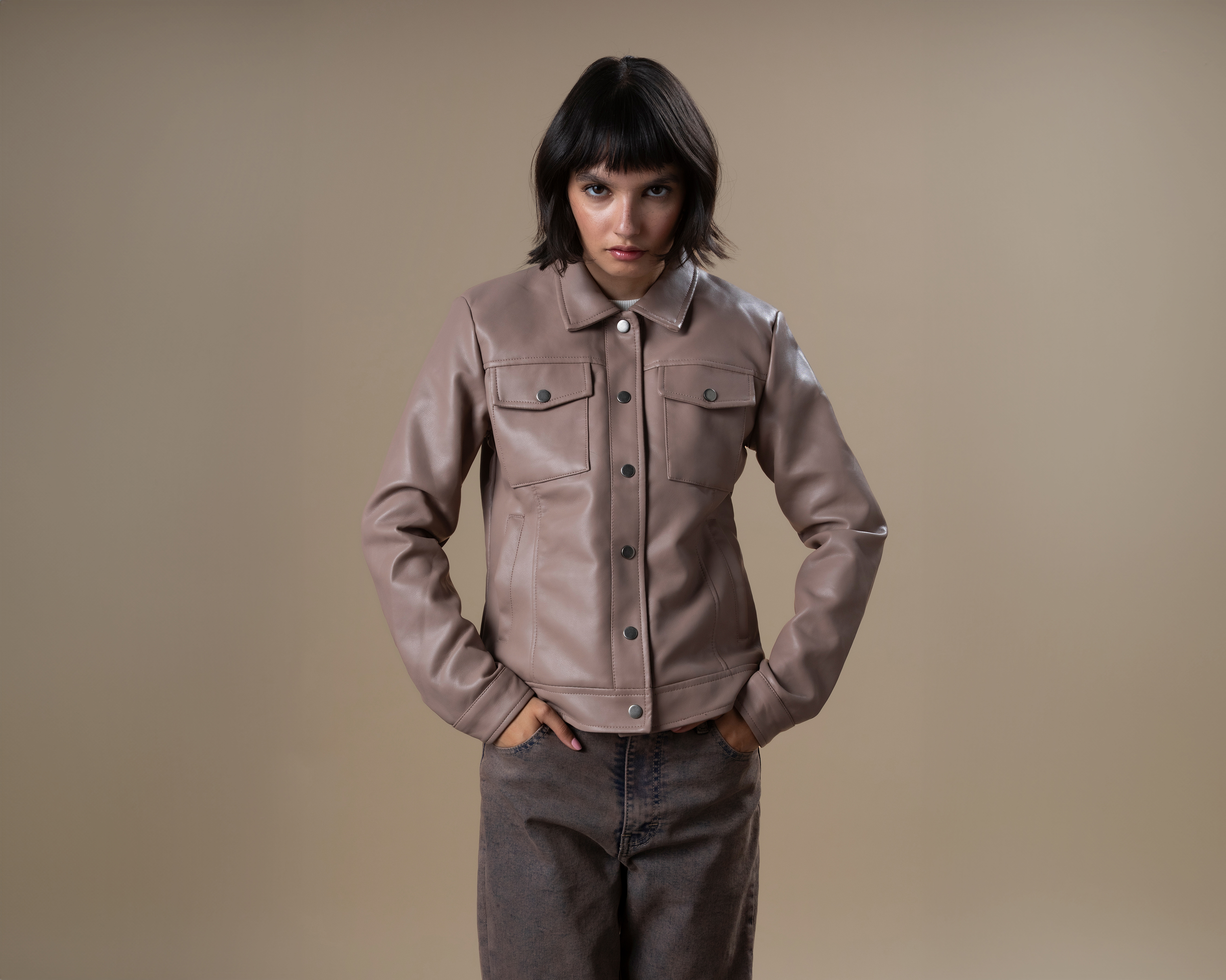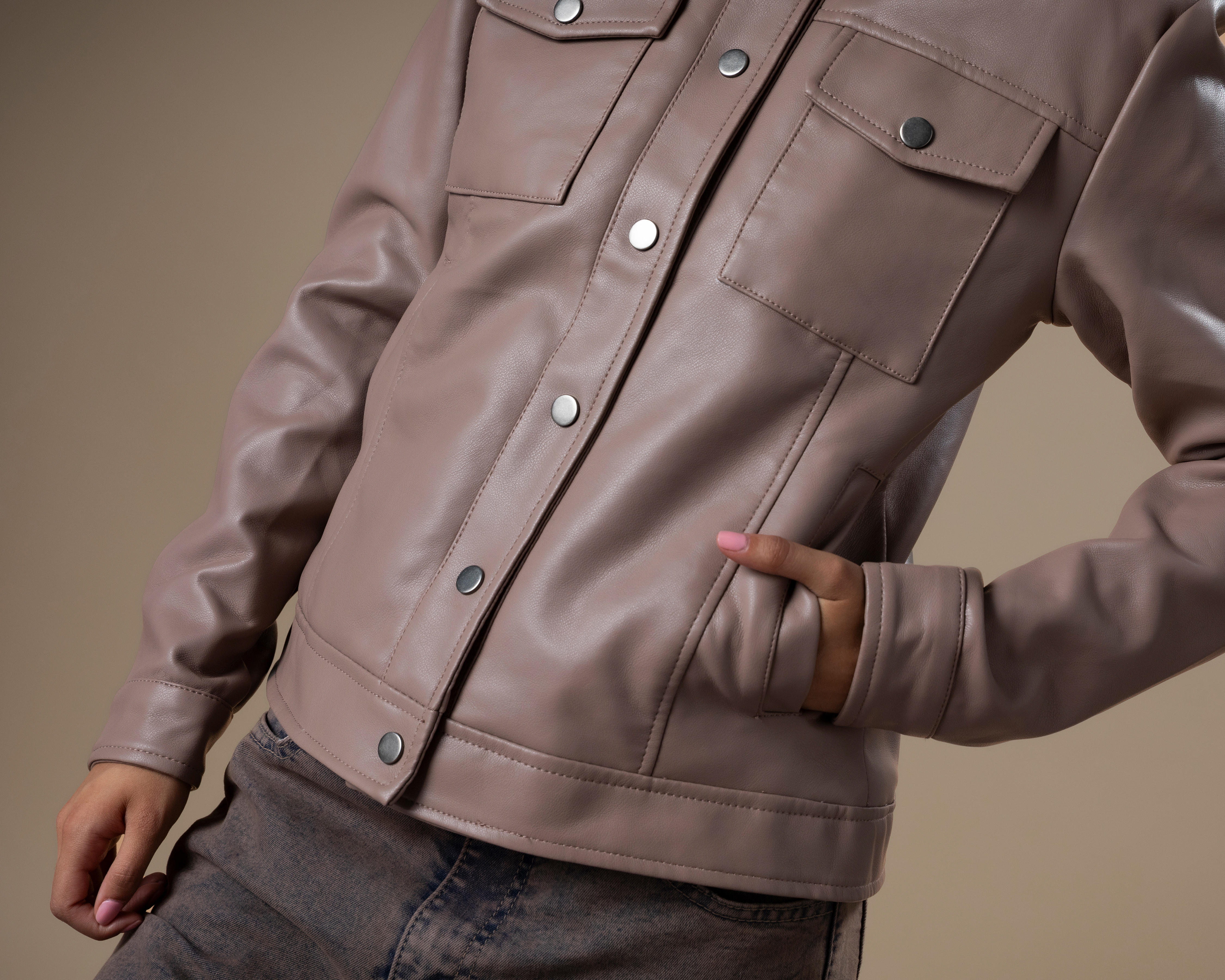 Chamarra con Bolsillos Delanteros Efecto Piel Strona para Mujer