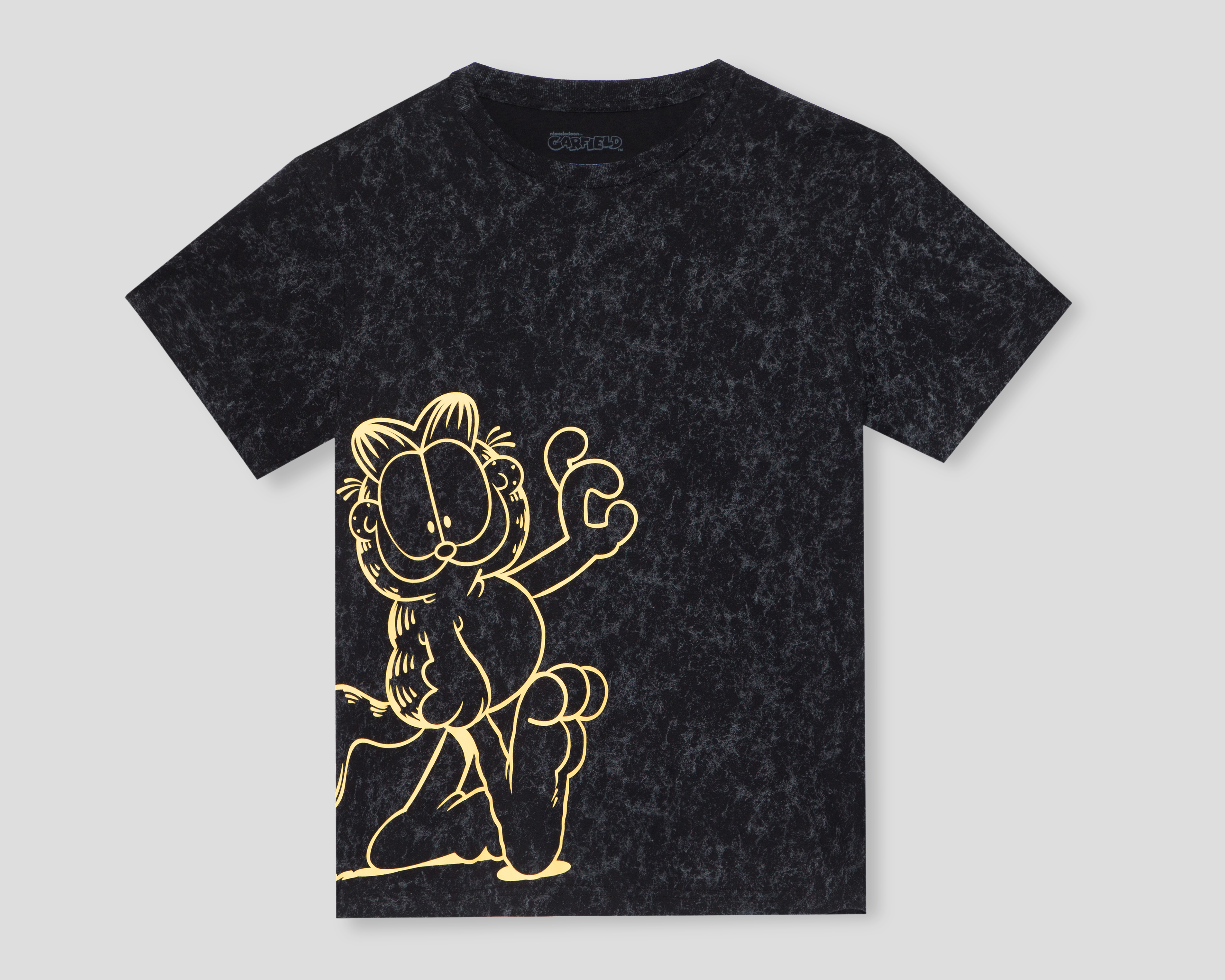 - Playera de Cuello Redondo Negra Garfield para Hombre