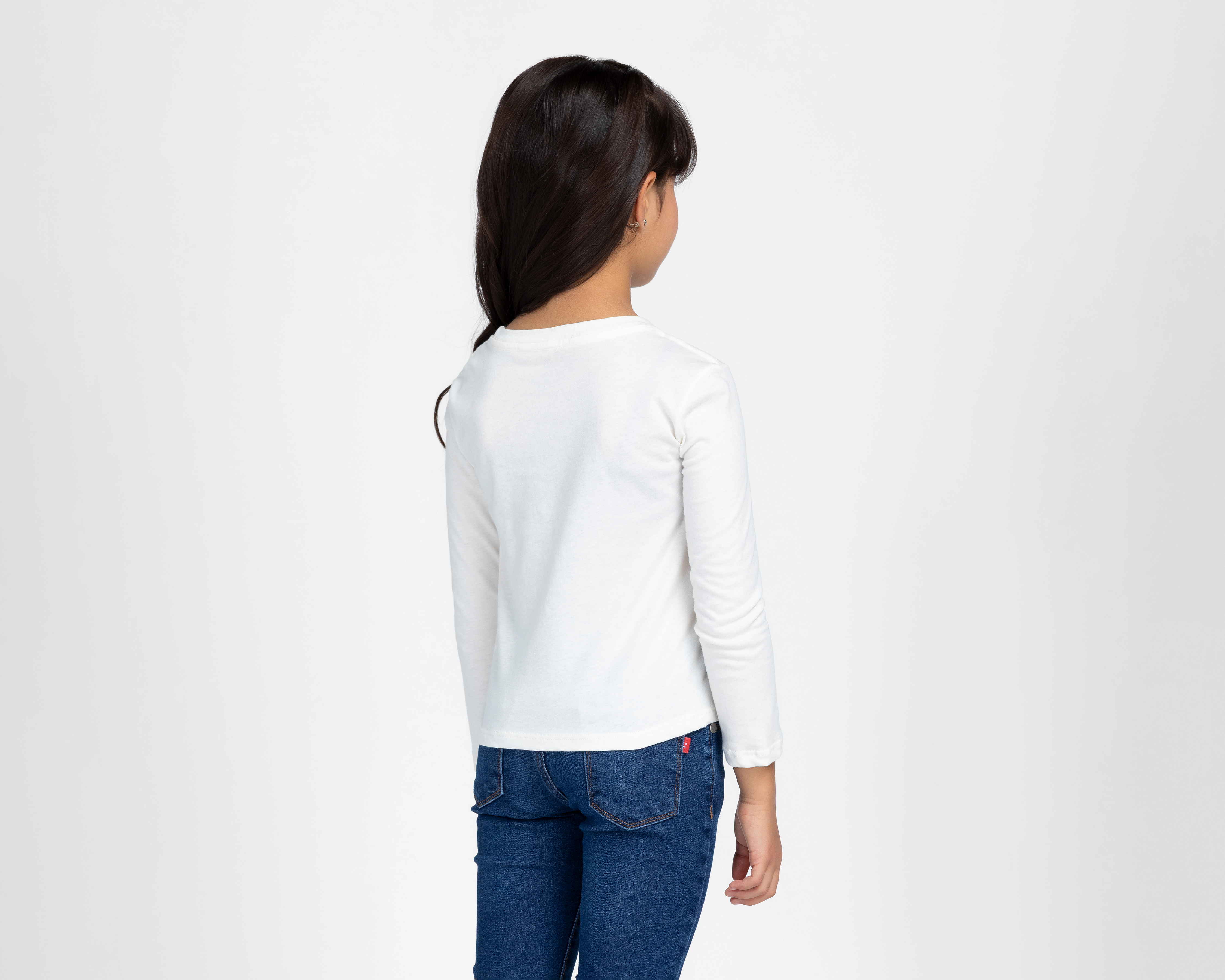 - Playera Manga Larga Cuello Redondo Blanca Bebe para Niña