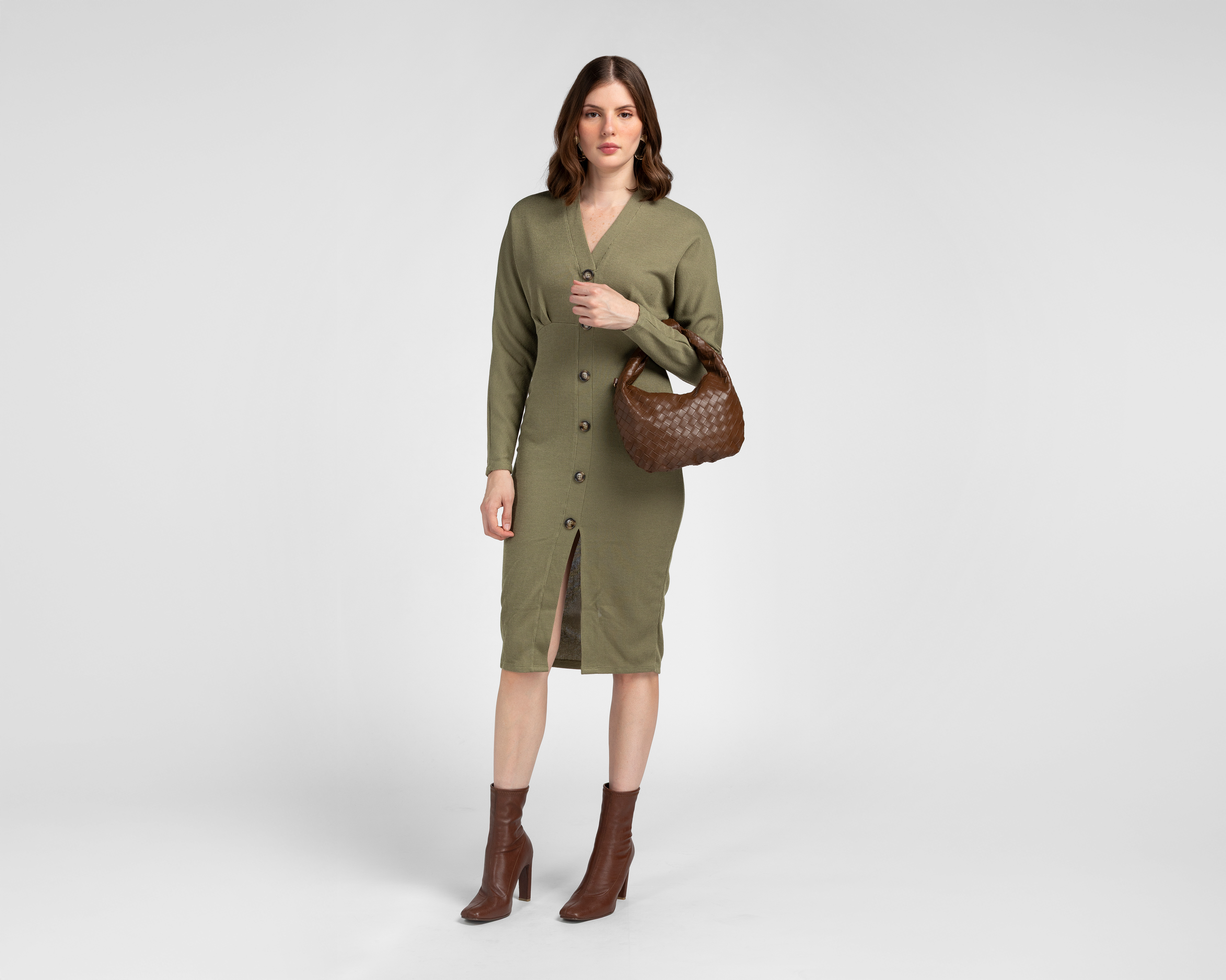 - Vestido Casual Jennifer Lopez Verde Manga Larga para Mujer