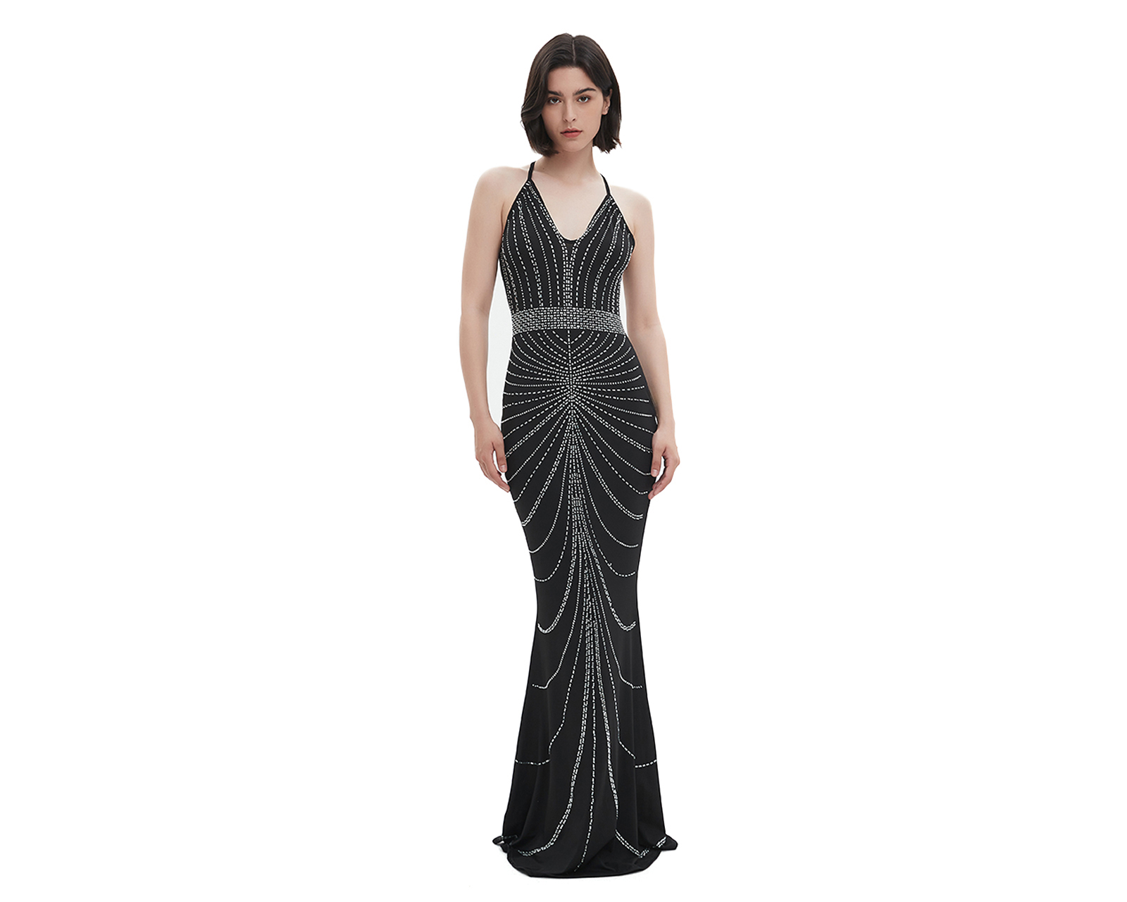 - Vestido de Noche Meirius Largo Negro con Brillos