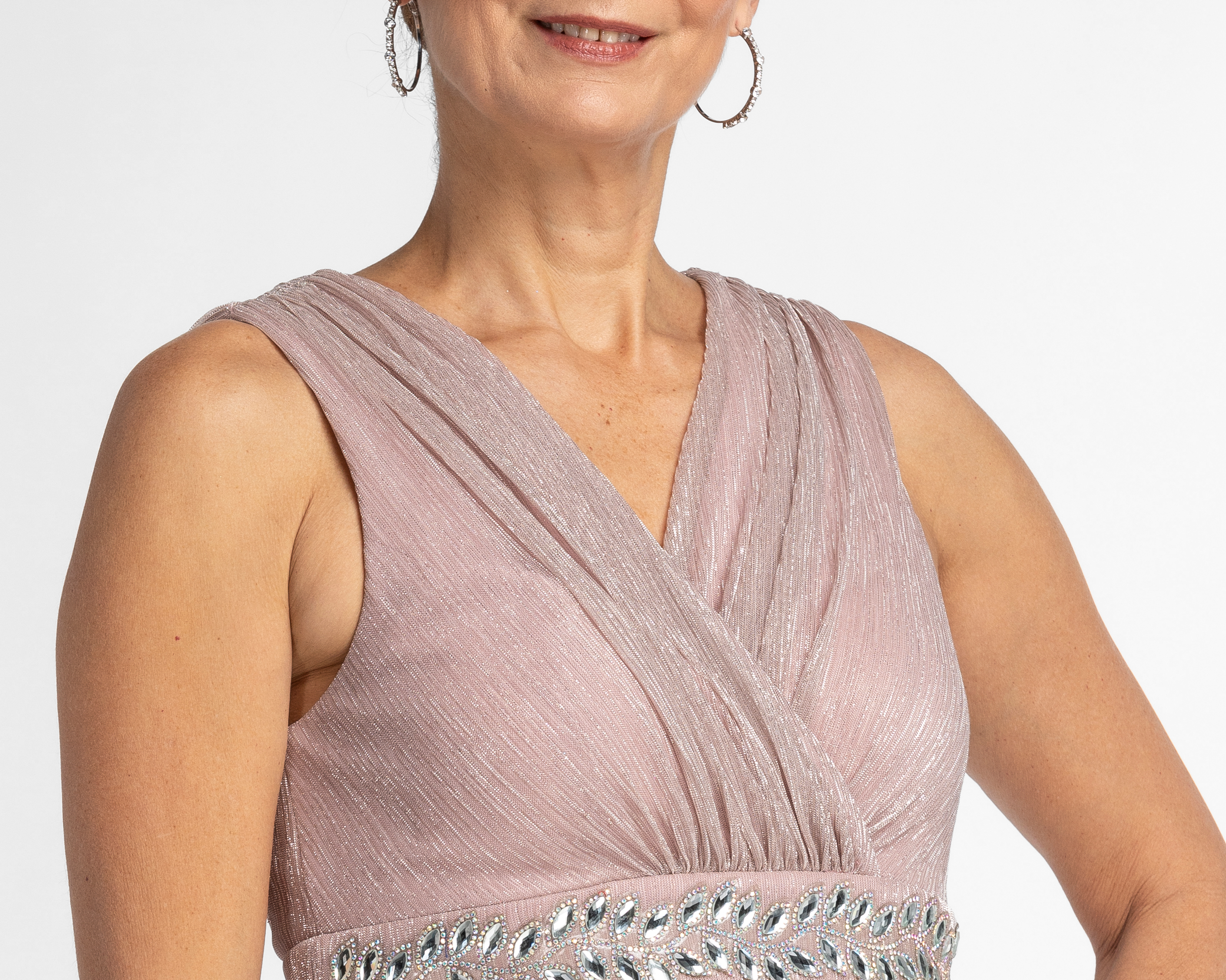 Vestido Sahara de Fiesta Largo Plisado con Pedrería